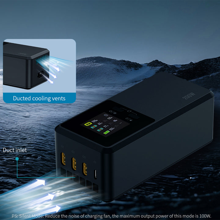200W high power output, can connect 3 smart flight batteriesand quickly charge them at the same time, allowingyour droneto take off quickly and aerial photography without battery life